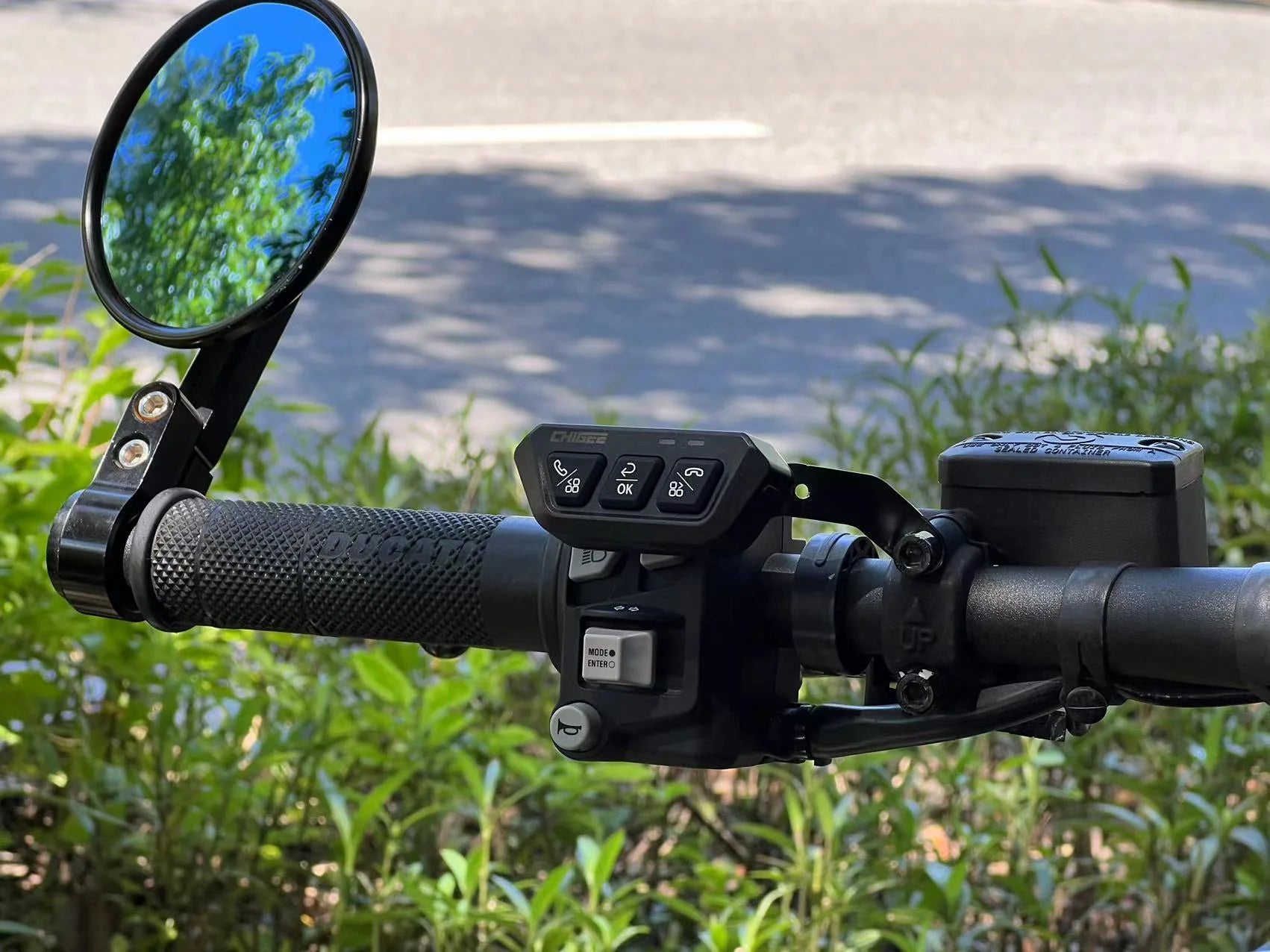 La Télécommande Sans Fil Bluetooth de Chigee est un accessoire innovant conçu pour améliorer l'expérience de conduite des motards. Cette télécommande offre une solution pratique et sûre pour contrôler le système AIO-5 Lite sans avoir à retirer les gants ou à quitter la route des yeux. Grâce à sa technologie sans fil 2.4GHz, elle garantit une installation facile et une intégration transparente, rendant l'accès aux fonctionnalités du système AIO-5 Lite plus accessible et plus intuitif.